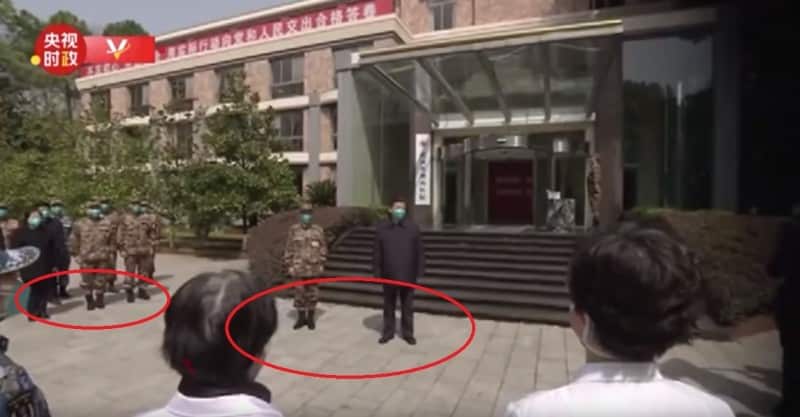 Ông Tang Phổ hoài nghi lần này ông Tập Cận Bình tới Vũ Hán thị sát, rất có thể là người đóng thế, tới “Giả Thần Sơn” là thủ pháp quen thuộc của Đảng cộng sản Trung Quốc (ĐCSTQ). Trước đây cũng có nhiều Giang Trạch Dân, Hồ Cẩm Đào. Trong đoạn video phát sóng tại hiện trường “Hỏa Thần Sơn” lần này, có những hai bóng nắng khiến khán giả phải chê cười thủ pháp cắt ghép làm giả quá vụng về. “Bóng nắng của nhóm người đứng bên cạnh là một góc vuông 90 độ, bóng nắng của Tập Cận Bình lại chếch 45 độ, hóa ra đây là một bức ảnh cắt ghép.”